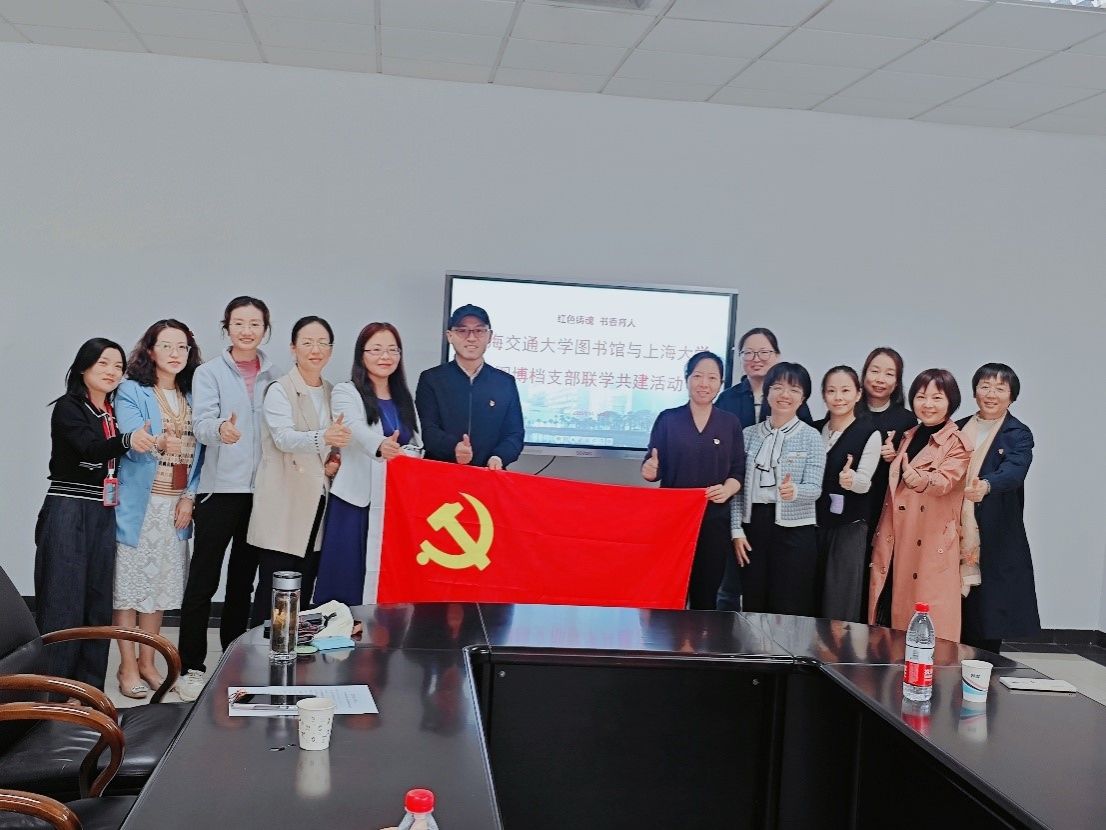 10 月 23 日上午,上海交通大学图书馆读者服务中心党支部与上海大学图博档党委第二党支部在上海大学图书馆开展了联学共建活动。此次活动以“红色铸魂 书香育人”为主题,旨在加强双方党支部的交流与合作,共同提升图书馆服务水平和育人成效。