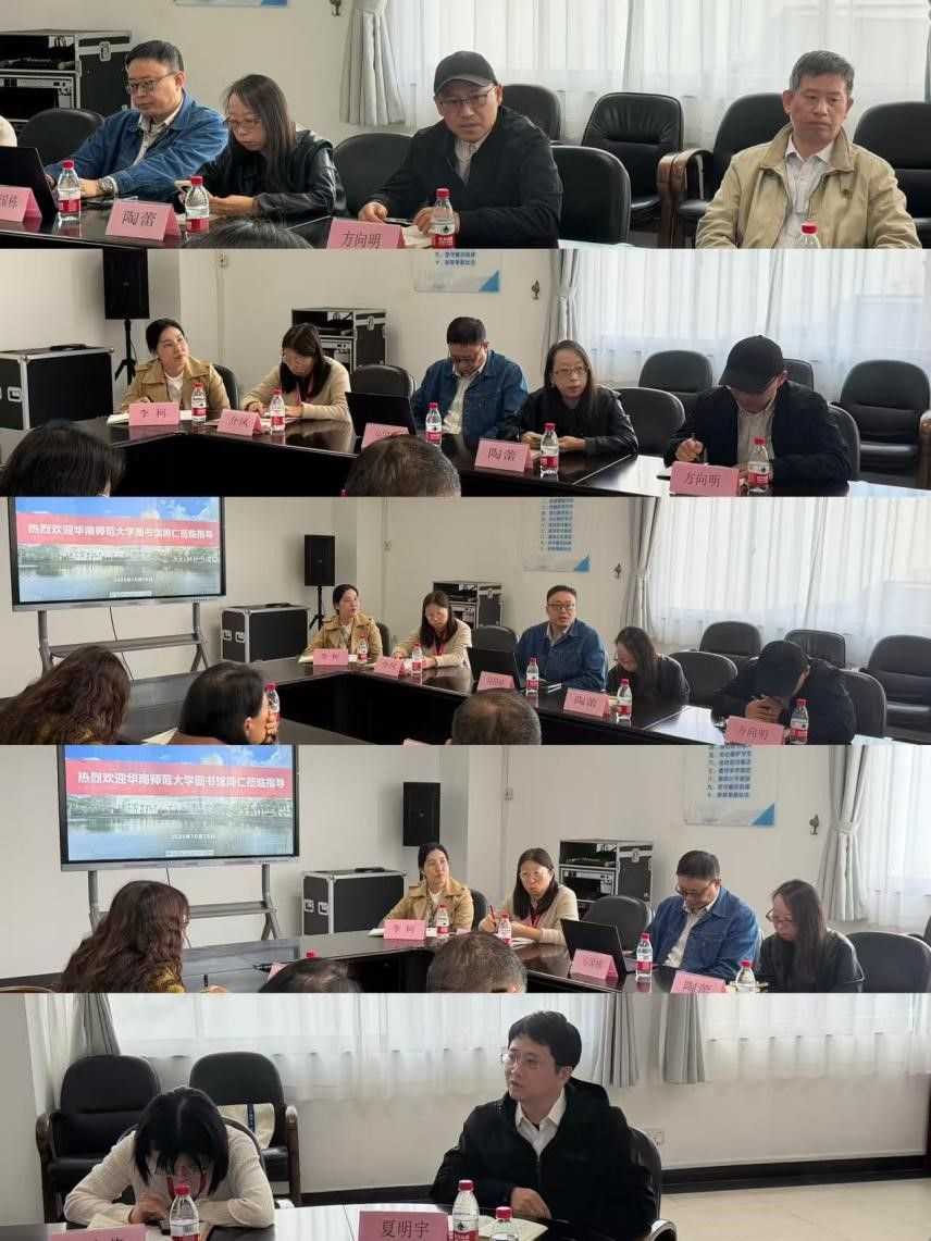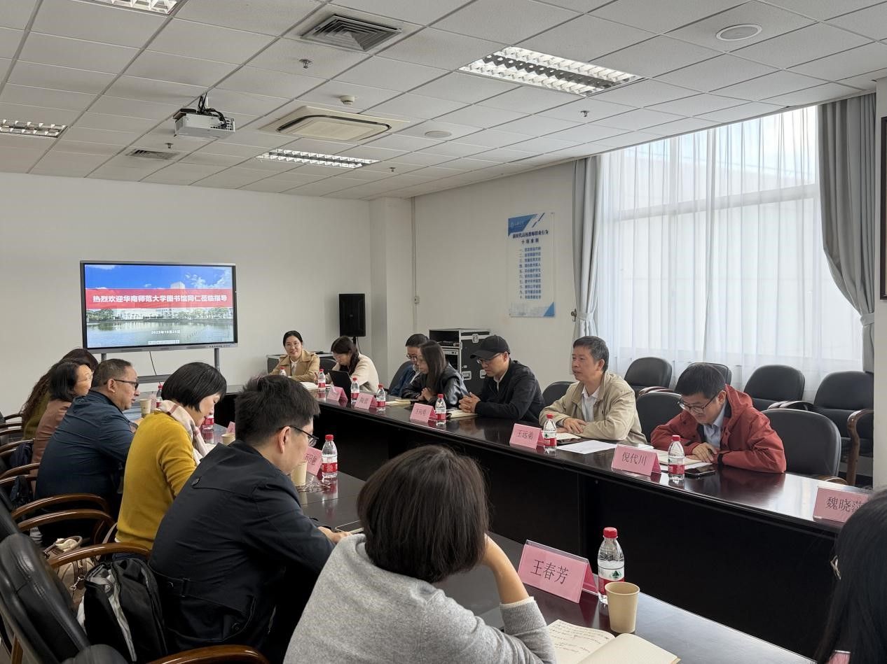 10月29日上午,华南师范大学图书馆党总支书记万日融带队,发展研究部主任杨涛、文化推广部主任王春芳、特藏部主任王彦、综合办公室主任张幸、南海校园图书馆综合业务部主任闫丽庆、党务秘书李源一行6人,赴我校图书馆开展专题调研交流。上海大学图博档党委书记王远弟、图书馆副馆长倪代川及图书馆各部门负责人参加会议。