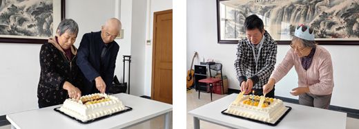 发言环节结束后,现场迎来了充满温情的祝福时刻。图书馆特意为金婚的仇建华夫妇、以及十一月过生日的老同志送上美好祝愿,并共同开启甜蜜的蛋糕。